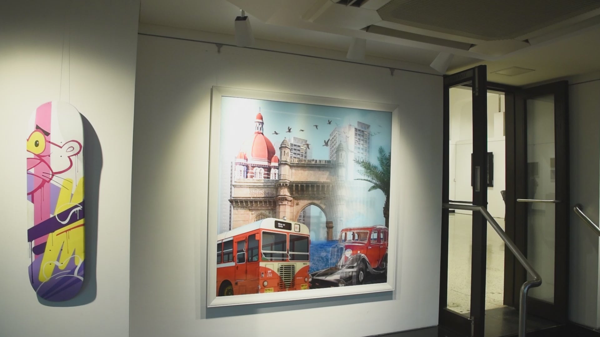 "Bombay Through The Kaleidoscope" pays tribute to Mumbai's evolving skyline. This artwork captures the charm of old Mumbai and the aspirations of the new. Using lenticular printing technology, it transforms with every viewpoint, reflecting different eras of the city.